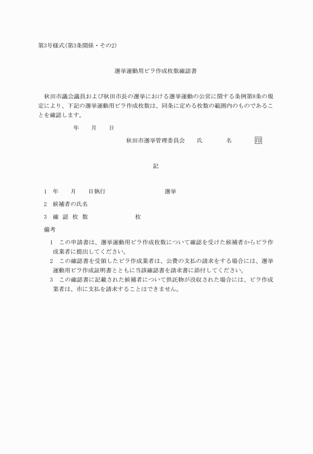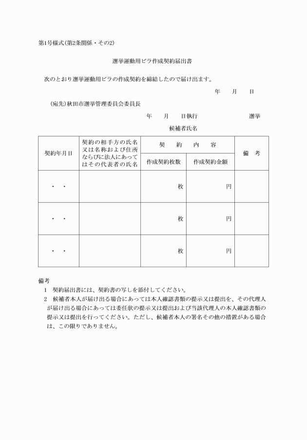 (平18選管告示10・一部改正、平21選管告示1・旧第2号様式その2繰下・一部改正、平25選管告示1・令3選管告示6・一部改正)