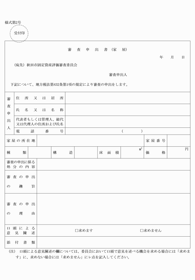 (平11固評委規則1・旧様式第10号繰下、令3固評委規則1・一部改正)