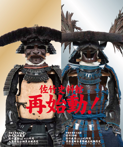 ![]() 市指定有形文化財 初代秋田藩主 佐竹義宣(よしのぶ)所用 人色皮包仏胴黒糸威具足 (ひといろかわつつみほとけどうくろいとおどしぐそく) 市指定有形文化財 佐竹20世 佐竹義重(よししげ)所用 黒漆塗紺糸素懸威五枚胴具足 (くろうるしぬりこんいとすがけおどしごまいどうぐそく) |