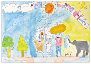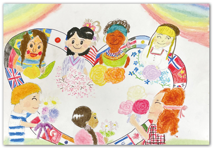 戦後80年の節目に、平和の大切さを考えるきっかけとしてもらうため実施した「国際平和絵画コンクール」に、市内の小・中学生から272作品の応募がありました。最優秀賞の吉田さんの作品は、来年3月改訂予定の「秋田市国際交流マスタープラン」の表紙絵として使用されます。