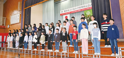 ![]() 11月1日の閉校記念式典。児童たちによる合唱 …令和7年11月現在の在校生は42人。うち最後の卒業生は10人です。 校歌 作詞:中川正男 作曲:小田島樹人 一 若杉の若杉の 山は緑に館の松 稲はこがねに日は光る われらは共に手をつなぎ 学ぶ喜び 戸島戸島明るい学校 二 一すじの一すじの 川はさやかに映る雲 むねをそよ風吹きすぎる われらは共に手をつなぎ 語る喜び 戸島戸島楽しい学校 三 太平の太平の 山は紫水の音 明日ののぞみによびかける われらは共に手をつなぎ 励む喜び 戸島戸島伸びゆく学校 |