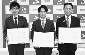 | 株式会社MERCIT(メルシット)(本社:岩手県) 業種/情報サービス業(ソフトウェア業) 所在地/中通二丁目 事業開始時期/今年10月 従業員/操業時1人(将来13人) ![]() 10月27日に行われた立地協定締結式。中央が(株)MERCITの照井隼斗代表取締役社長、両端は神部副知事と沼谷市長 ●問い合わせ/企業立地雇用課tel(888)5733 |