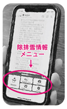 市公式LINEの友だち登録により、当日の除排雪の実施状況が確認できるほか、交通安全上支障がある雪山などをスマートフォンのカメラで撮影して市に情報提供できます。