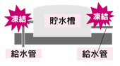 気温がマイナス4度以下のときや、一日中氷点下の真冬日が続いたときは、水道管が凍結したり破裂しやすくなります。完全に凍ってしまうと解凍作業や水道管の破裂修理に多額の費用がかかる場合もあります。本格的な冬が来る前に、じゃ口や水抜き栓を点検しましょう。