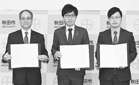 | 市と株式会社ナック、株式会社サンシーアイ、秋田基準寝具株式会社、有限会社ライジングが、「災害時における温冷水の供給協力に関する協定」を締結しました。 これにより、災害時に、避難所などで温冷水が必要となった際に、ウオ−ターサーバーと飲料水ボトルを供給していただくこととなります。 ●問い合わせ/防災安全対策課tel(888)5434 ![]() 11月20日の締結式。沼谷市長の左が(株)ナックの川上裕也取締役専務執行役員クリクラビジネスカンパニー代表、右が(株)サンシーアイの加藤築代表取締役 |