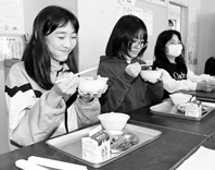 ![]() 11月28日、土崎小で 秋田県畜産農業協同組合の協力で、土崎小と土崎南小の給食に、市内産の秋田錦牛を使用したすきやき469食分が提供されました。 地産地消や食育推進の一環として、市内の小学校で順次行われるこの取り組みは今年で12回目。子どもたちは、旨(うま)味たっぷりの柔らかいお肉に夢中で、大満足の様子でした。 ●問い合わせ/産業企画課tel(888)5724 |