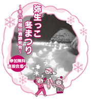 ![]() 日時/2月7日(土)17:00〜20:00 会場/史跡地蔵田遺跡(弥生っこ村) *参加無料 *直接会場へ ミニ灯籠(とうろう)が灯る遺跡鑑賞と冬の竪穴住居体験。甘酒のふるまいも♪ ●ミニ灯籠づくり参加者募集! 当日の13:00〜15:00に直接会場へ、バケツを持ってきてね。 問い合わせ/文化振興課tel(888)5607 |