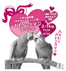 ![]() 2026年人気ナンバーワンは誰だ!?あふれる「推し愛」を書いてくれた、当日先着100人にチョコをプレゼント♪ ♥カップル限定♡愛のガイドツアー(11:15〜) ![]() 飼育員がガイドしながら、ペアの動物のエピソードをお話します。参加者には"愛の証(あかし)"として珍重されているエミューの羽をプレゼント♪ |