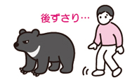 | ◆慌てて走って逃げると追いかけられることがあります。慌てず、騒がず、クマを見ながらゆっくり後ずさりして距離をとりましょう ◆大声を上げたり、物を投げつけたりする威嚇(いかく)行動は襲われる恐れがあるのでやめましょう ◆近くに逃げ込める建物や車がある場合は、すぐに避難しましょう ◆避難する場所が近くにない場合は、クマと自分との間に電柱や木などの障害物を挟むように移動しましょう ![]() |