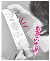 ![]() 年のはじめの運試し。厄年を迎えた私にとって今年のおみくじには特別な想いが。ここ数年は小吉、末吉と続き今回…凶だけは免れたい!そんな想いで引いたのは協力隊かなたさんのイラスト記とコラボしたおみくじ。市公式インスタグラムで挑戦できるのでぜひお試しを♪<目> |