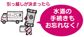 3月、4月は転入・転出のシーズンです。水道の使用中止や開始の手続きを忘れずにお願いします。大変混み合いますので、引っ越しの1週間前までにお済ませください。
