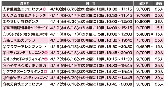 ●「*」印は別途材料費などが必要です ●申し込みは先着順で、3月7日(土)10:00からサンライフ秋田(八橋)へ。tel(863)1391 ![]() |