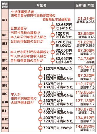 ![]() *表中の公的年金には、非課税年金(遺族年金、障害年金)を含みません。また、第1〜5段階の合計所得金額には、公的年金収入額に係る所得金額を含みません。 *令和7年度税制改正で給与所得控除の最低保障額が10万円引き上げられましたが、令和8年度介護保険料の算定では改正前の控除額を用いるため、市町村民税が非課税であっても課税とみなされる場合があります。 ●問い合わせ/介護保険課tel(888)5672 |